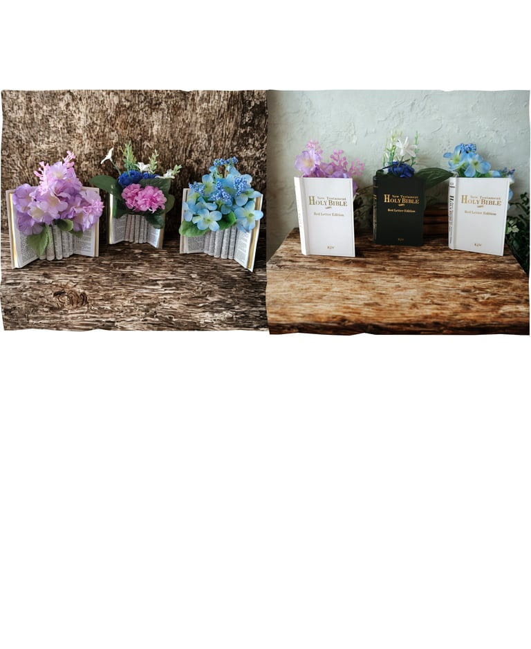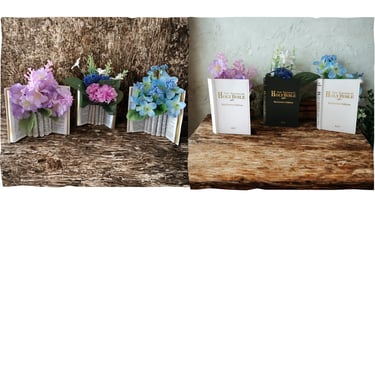 Artisan-crafted book vases adorned with silk blooms